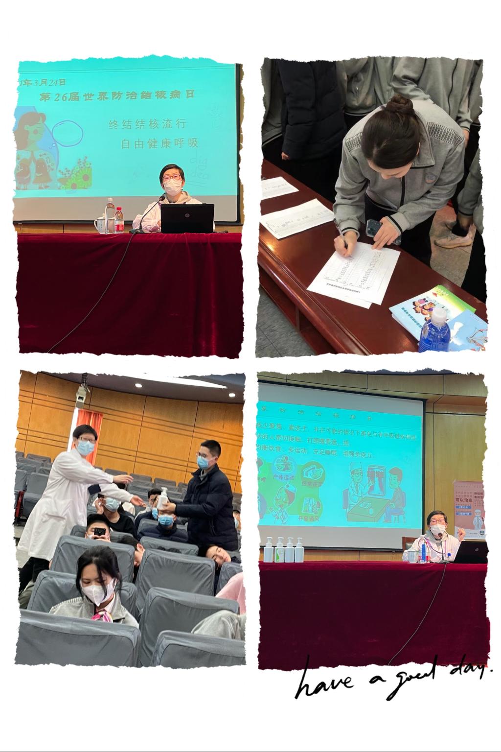 每年的结核病日都是向学生普及健康教育知识的契机,保健站也会继续做好结核病的知识宣传工作,促使学生们能正确认识结核病,做到早发现、早诊断、早治疗,从而降低发生聚集性结核病的发生,寄望同学们都能健康快乐地生活和学习。