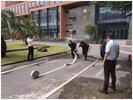 同时,结合校区实际情况,引导参训人员如何加强消防安全管理,如何做好防火检查,如何正确报火警、初期火灾的扑救、日常防火巡查注意事项以及火灾发生时如何组织人员疏散等消防知识的掌握,对队员进行了业务理论、原地着灭火战斗服操、一带一枪灭火演练;先由保安队长讲解每个科目的动作要领、操作方法、注意事项等内容,并亲自示范,后由微型消防站队员依次操作实践。