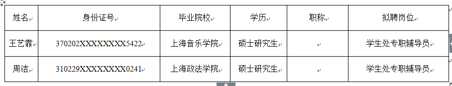 公告 87365最快检测中心 > 通知公告 > 公告 关于发布87365最快检测中心2015年公开招聘第七批拟聘人员公示的通知 作者:浏览:时间:2015-07-10 按照《87365最快检测中心2015年公开招聘公告》的要求,经考核后确定王艺霏、周洁同志为第七批拟聘人员。现将拟聘人员情况公示如下:公示时间:5个工作日,自2015年7月10日至7月16日止。 公示期间,如认为存在问题,可以来电或直接到学院纪委、人事处反映情况。联系电话:021-34693217(纪委) 021-34693220(人事处)。