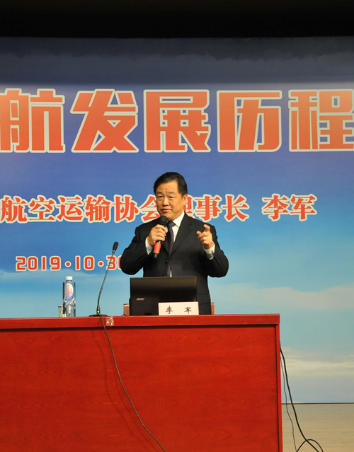 在全行业庆祝新中国民航成立70周年,纪念“两航”起义70周年之际,为深入学习了解中国民航的发展历史,大力弘扬“两航”起义爱国主义精神,激励学院全体师生更加爱国爱党爱民航,积极践行当代民航精神,以自强不息的奋斗精神投身新时代民航强国建设,全力推动民航高质量发展,10月30日上午,学院邀请中国航空运输协会理事长李军来校,做《中国民航发展历程》专题辅导报告。