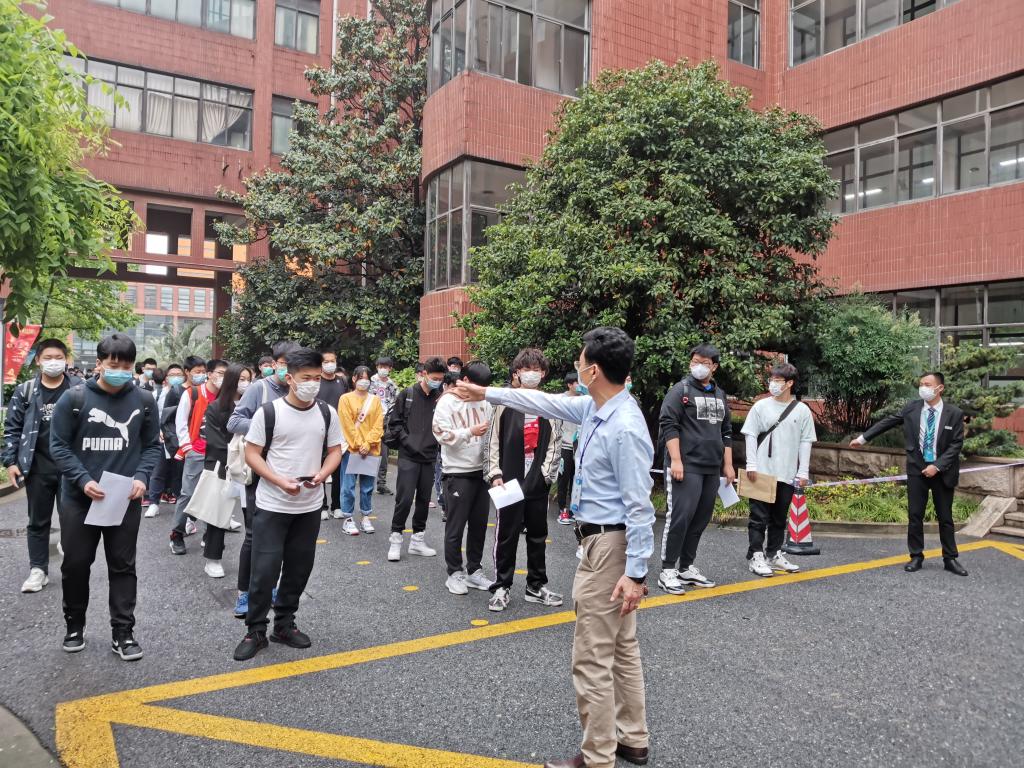 考生保持安全距离排队有序进入考场