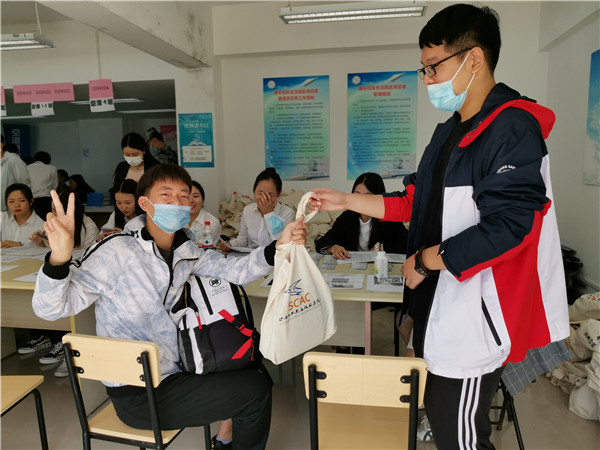 今年的新生大礼包也格外丰富。既有各系部精心准备的潮流鸭舌帽、爱心保温杯、爱心雨伞等,也有学生工作处统一为所有新生发放的去年“点赞量第一名的帆布袋”、校标徽章、小飞机U盘等,学生资助中心发放了肥皂、消毒液等;保健站发放了温度计等。