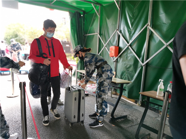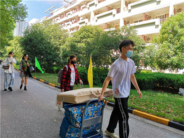 新生来到校园后通过人脸识别以及系部扫码即完成报到,实现了新生大数据实时化、可视化。学生工作处在报到场地设立咨询组,为新生提供暖心、贴心的服务,为家庭经济困难新生开设“绿色通道”,并给予所有学生及资助礼包,确保不让任何一名学生因家庭经济困难、疫情等原因影响入学。学校充分发挥心理咨询中心咨询服务体系的作用,并对所有新生发放了心理健康手册。物业管理员身披志愿者授带,在生活园区红旗广场、37幢楼前,为新生提供咨询、指引、带领服务,在生活园区的东门,后勤保卫处安排巡逻,主动帮助受伤新生搬运行李、送新生前往宿舍入住,让新生们在入学第一天就感受到了学院大家庭的温馨。