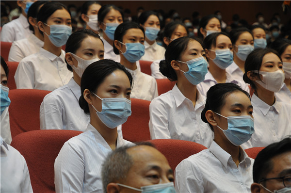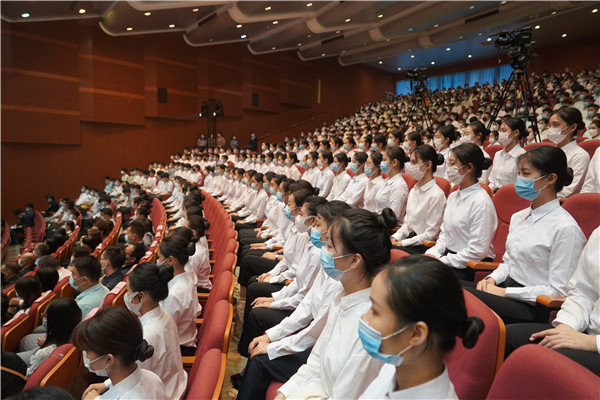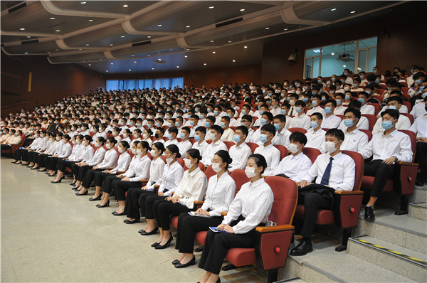 学院今年共报到2020级新生3111人。五个系部近1000名新生代表在大礼堂参加现场活动,其他班级在教室收看网络直播。