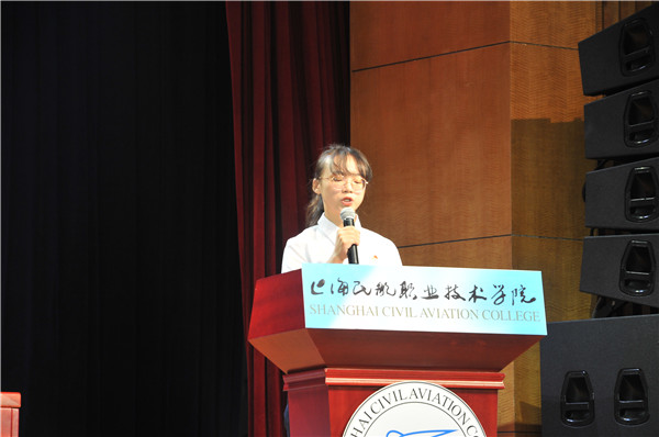 学生会主席、航空运输系朱佳雯同学作为老生代表发言,她对新生们表示热烈欢迎,并期待着和2020级同学共同谱写青春之歌的崭新一页。