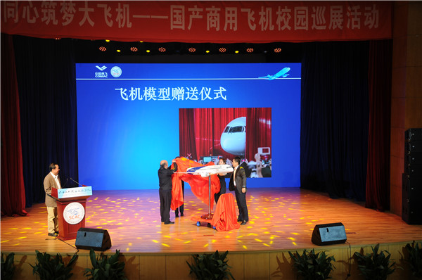 此次“国产商用飞机校园巡展”活动将历时3天,还将举办“大飞机杯”校园技能大赛、《让中国的大飞机翱翔蓝天》《国产商用飞机制造与工匠精神》等3场专题报告、“三个敬畏”主题演讲比赛、“大飞机杯”大合唱比赛、校友分享会等一系列丰富多彩的科技、技能和文艺活动。学院师生还将择时前往商飞总装制造中心参观学习,进一步加深对国产民机的认识和了解。