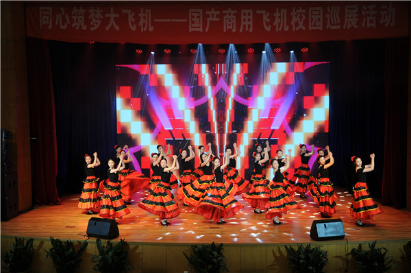 开幕式结束后,学院师生以精心准备的文艺节目向嘉宾们致谢。白芯泽教师《再一次出发》的激情,学院舞蹈队西班牙舞《火一样的涟漪》节奏的热烈明快,为随后的大飞机讲坛点燃现场气氛。