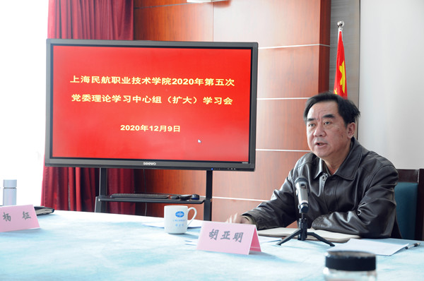 胡亚明指出,党的十九届五中全会提出的一系列蓝图目标、战略布局、工作部署激动人心、催人奋进,根据民航局党组的统一部署,学院党委结合工作实际,研究制定《学习宣传贯彻党的十九届五中全会精神工作方案》,提出总体要求、明确重点内容、落实工作部署、严格组织实施,确保学习教育富有成效。一是党委中心组(扩大)理论学习以上率下,采用领导干部领学方式,及时开展学习《中共中央关于制定国民经济和社会发展第十四个五年规划和二〇三五年远景目标的建议》、习近平总书记关于《建议》几个重点问题的说明,要求全院党员干部把深入学习宣传贯彻党的十九届五中全会精神作为当前和今后一段时期的重要任务,先学一步、多学一遍、学深一层。二是强化基层党组织的政治功能,各直属党支部以覆盖全体师生为目标,创新方式和载体,利用“三会一课”、主题党日活动等形式,精心组织各党支部学习十九届五中全会精神。三是11月中旬以视频会议方式先后组织学院党员干部和广大师生收看中央宣讲团成员、科技部部长王志刚和中央宣讲团成员、教育部党组书记、部长陈宝生主讲的十九届五中全会精神宣讲报告会。四是及时将宣传贯彻十九届五中全会精神纳入时事政策和思政课程内容中去,推动全会精神进课堂、进教材、进头脑。各个层面的宣教活动确保了学院广大师生对党的十九届五中全会精神学深学透、入脑入心。
