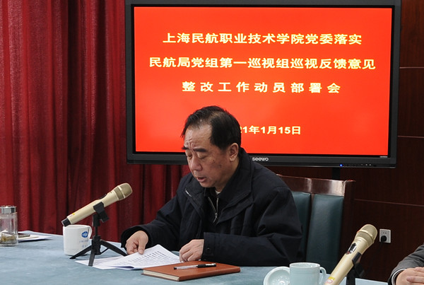 为进一步认清做好巡视整改工作的极端重要性和现实紧迫性,以更周密的计划、更严密的组织、更有力的举措、更务实的作风,确保整改工作按计划顺利推进,狠抓整改措施落实落地,取得实实在在的成效,1月15日下午,学院党委在徐汇校区综合楼1205会议室召开落实民航局党组第一巡视组巡视反馈意见整改动员部署会。会议由党委副书记、院长胡亚明主持,党委书记戴志刚作巡视整改动员部署讲话,对扎实做好巡视“后半篇文章”提出具体要求。党委委员章恒龙、杨征、孙暄、姚力军出席会议并作表态发言。全体处级中层干部、学院巡视整改工作领导小组办公室成员出席会议。