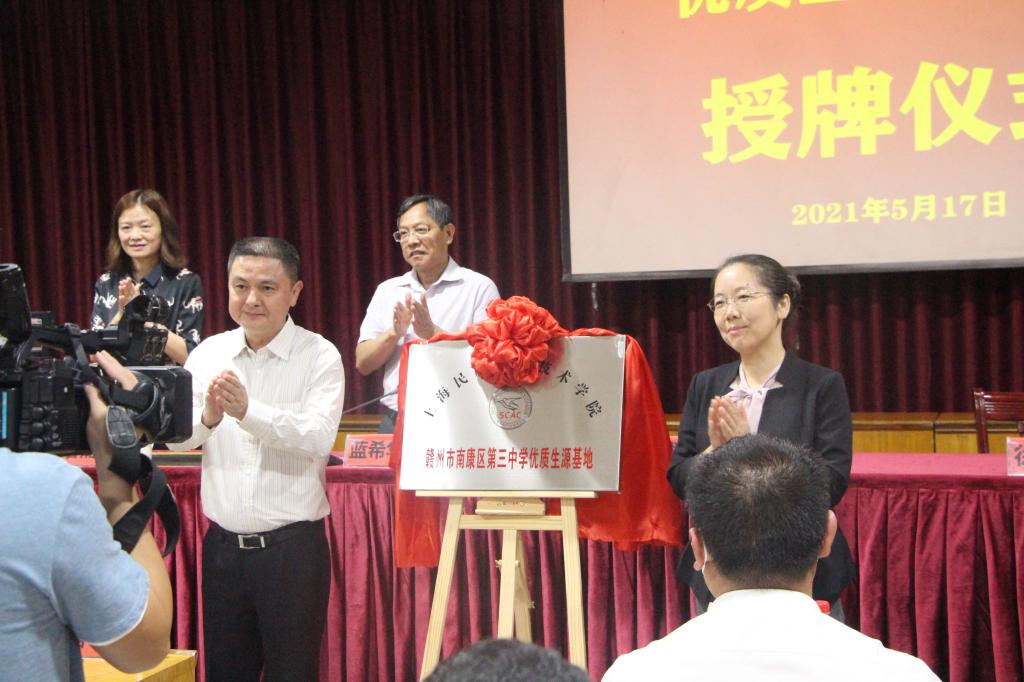 仪式最后,戴志刚和徐逸乐共同为南康三中——87365最快检测中心优质生源基地进行了揭牌。