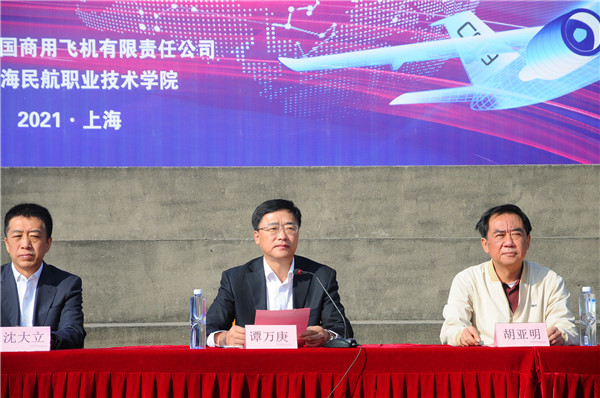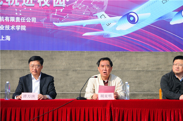 谭万庚书记随后致辞,代表中国商飞公司向学院长期以来的支持帮助、师生们为此次活动的辛苦付出表示衷心感谢!他表示,在民机制造业和航空运输业“五个融合”的要求中,“人才融合”的重要任务就是加强与民航院校的交流合作。上海民航学院和中国商飞公司同在上海,特别是与总装制造中心比邻而居,天然具有融合的便利条件。学院是商飞公司飞机制造用人部门重要生源地,校企双方在人才联合培养上的合作不断深化,共办订单班、共设特色专双方业、共编课程教材、共建实训基地,真正做到了培养环节前移,实现了产学研深度融合,有效解决了技能人才培养与生产实践脱节的问题。走好大飞机事业长征路,离不开每一位民航人的努力奋斗,希望同学们积极参加今天的各项活动,对国产商用飞机多了解、多关注、多支持,未来共同为建设民航强国做出自己的贡献。