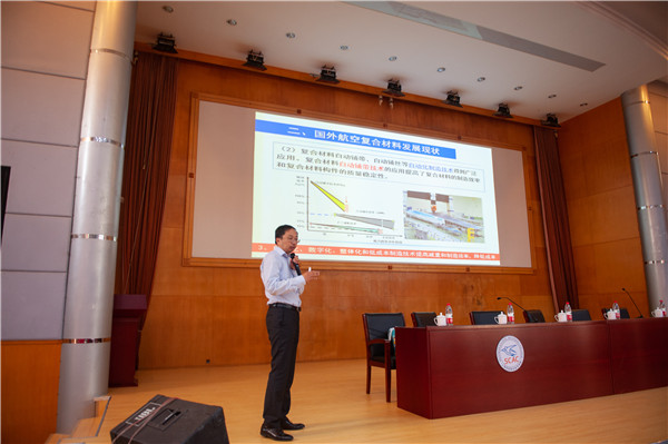 大国工匠、上飞公司零件加工中心钣金组长、学院特聘教授王伟带来专题讲座《我与大飞机共成长》,从航空发展过程概述、中国商飞情况简介、匠心缘起矢志不渝、为大飞机保驾护航四个方面讲述与大飞机的成长故事;上飞公司非热压罐成型工艺技术副总师、学院特聘教授杨洋主讲《航空复合材料技术简介》,深入浅出的讲解加强了学院师生对航空复合材料的了解。