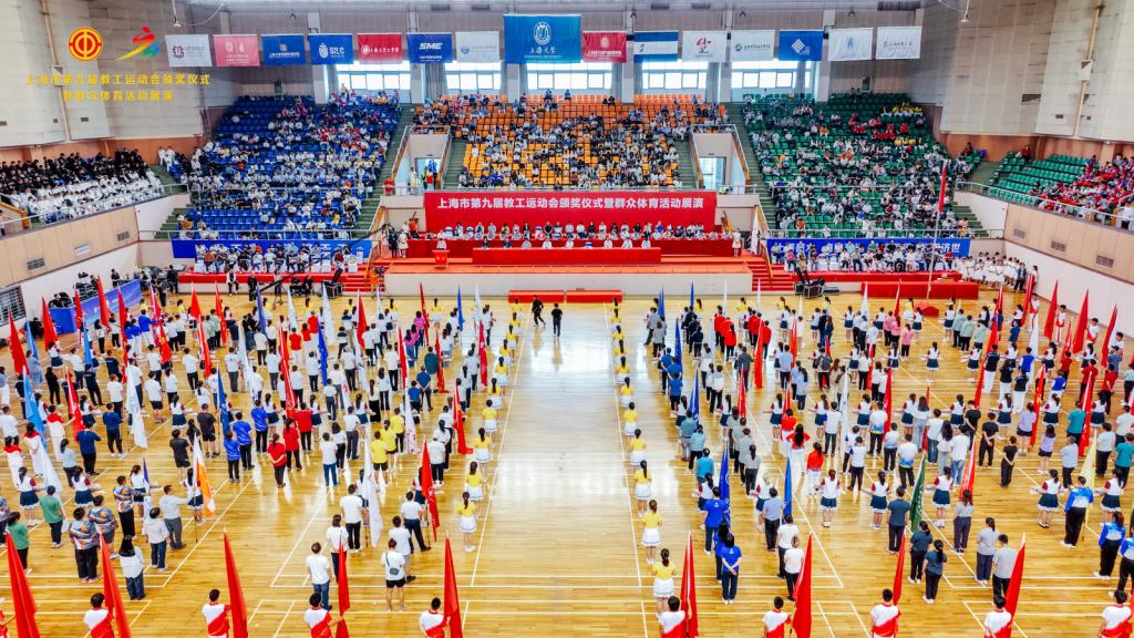 6月18日,由上海市教卫工作党委、上海市教委、上海市教育工会主办、上海大学承办的上海市第九届教工运动会颁奖仪式暨群众体育活动展演在上海大学宝山校区隆重举行。我院由党办主任顾青、工会办副主任陈钟惠两位老师带队,钱佳琦等15名教职工一同参加此次闭幕活动。
