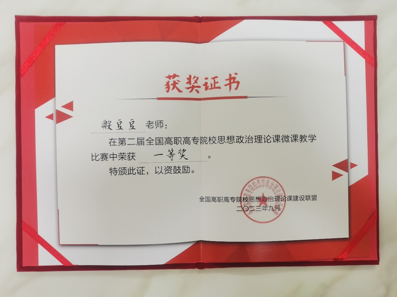 为贯彻落实习近平新时代中国特色社会主义思想,深入学习贯彻党的二十大精神,提升思政课教师队伍素质,发挥高校思想政治理论课落实立德树人根本任务的关键课程作用,马克思主义学院教师殷豆豆选取《习近平新时代中国特色社会主义思想概论》中“高质量发展”主题,充分运用现代教育技术手段及设备,录制《为什么要实现高质量发展》参加第二届全国高职高专院校思想政治理论课微课教学比赛,荣获一等奖佳绩。