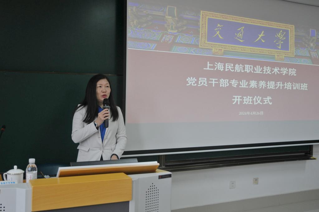项玉副院长向大家介绍了上海交通大学的历史沿革和办学特色,回顾了与我院近年来合作开展干部教育培训工作的情况,汇报了本次培训班的项目设计思路尤其是教学课程体系建设的情况,表示终身教育学院将坚持在干部教育培训工作中以履行社会服务职能、发挥文化辐射作用、提供决策“智库”支撑,推进校地协同创新为愿景,致力于发挥交通大学的科技优势、人才优势、信息优势和国际化优势,面向高层次、定位高水平、培训高质量,服务区域经济和社会发展及干部队伍建设。她承诺,本期培训班将为我院配备上海交通大学的校内外优质师资力量,提供高质量的课程教学服务,并衷心希望与我院有更多更广的合作机会和交流空间,持续提升我院党员干部政治素质和专业素养培养的系统性、针对性、实效性。