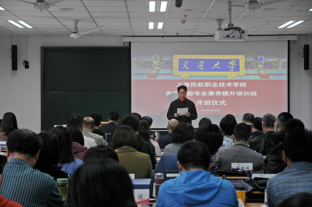4月26日上午,开班仪式在徐汇校区1号楼605公共教室举行,上海交通大学终身教育学院副院长项玉致辞,我院院长、党委副书记王立新出席开班式并发表讲话,全院处级中层干部、科级干部以及党委办公室相关工作人员共计90人参加,党办主任顾青主持开班式。