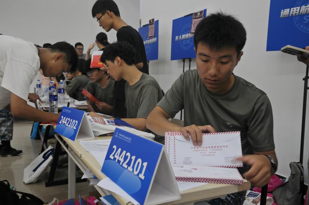 为了不让新生们拖着行李来回奔波,学院采取了先到宿舍区办理入住手续,再到教学区办理入学手续的流程,方便新生和家长轻装上阵。在经过了身份确认、财务缴费、照片采集、二级学院报到等流程后,报到即完成。