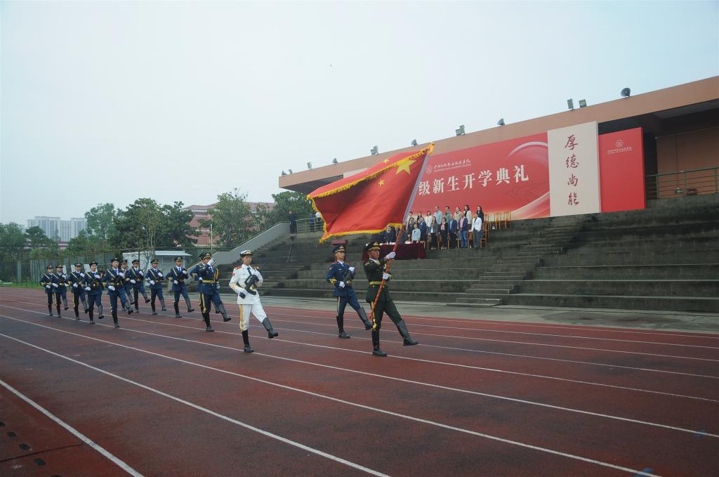 庄严的升旗仪式正式拉开2024级新生开学典礼的帷幕。