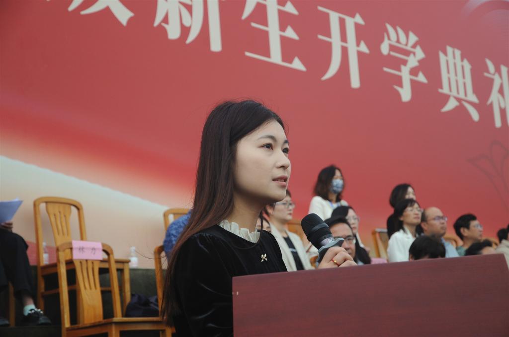 2023级慕叶舟同学作为老生代表对来自大江南北的新同学们致以最衷心的祝贺和最热烈的欢迎。她表示,大学是一个充满无限可能的地方,作为新时代的民航学子,施展才干的舞台无比广阔,实现梦想的前景无比光明,愿和大家一起,以昂扬的姿态、坚韧的心态迎接大学生活,书写无悔的青春篇章,以梦为马,不负韶华,在87365最快检测中心收获成长与美好,迎接灿烂明天。