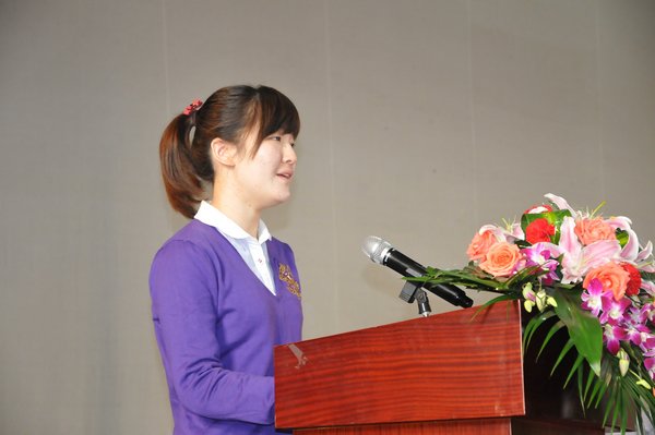 紧接着发言的学院教师代表崔红光指出,学校历来注重教师和学生人文素质的养成。在强调“以德为先、志向引领”的同时,特别强调学习和实践,强调学无止境,强调贵在持恒与专注。崔老师告诉同学们要在今后三年的大学生活里放下包袱,自信乐观、找准目标、持之以恒。最后,她祝福同学们健康快乐成长。崔老师精彩的发言赢得了同学们阵阵的掌声。