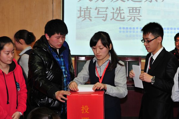 在周凌之宣读完本次学代会议程、候选人名单和选举方法后, 23名候选人依次登台演说。通过半年来的锻炼和学习,他们已经适应了学生会的工作环境。此刻,这些优秀学生怀揣着一颗为学生会奉献、为同学服务的心,阐述了各自将如何通过自身的努力与付出使学生会工作更上一层楼的理想。他们的演说虽然没有华丽的语言,但充满着真诚的信念和慷慨激扬的语调展现了他们坚定、积极、乐观的品格,传达出“学生会的未来后继有人”的积极信号,赢得了代表们热烈的掌声。