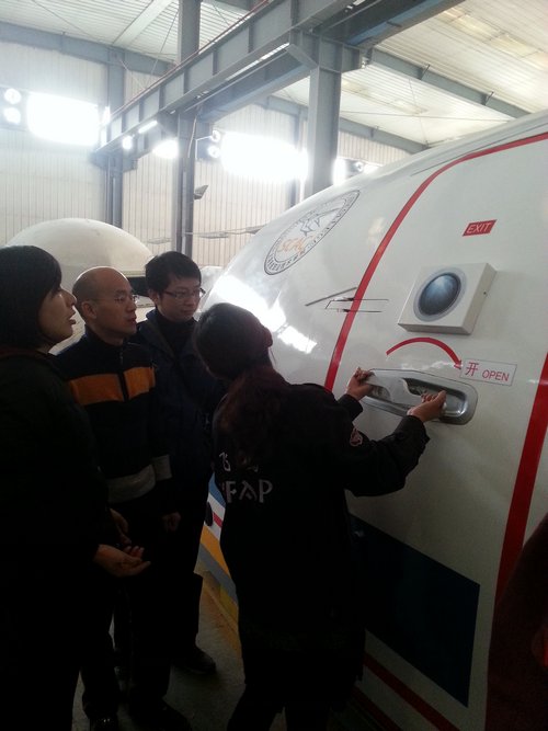 3月25日,民航经管系主任孙军、空乘教研室施敏老师、实训教研室徐进老师、学院纪委张莹老师一行四人赶赴西安飞鹰亚太航空模拟设备有限公司(以下简称“飞鹰公司”)对我校定制采购的B737-800舱门训练器进行工厂验收。
