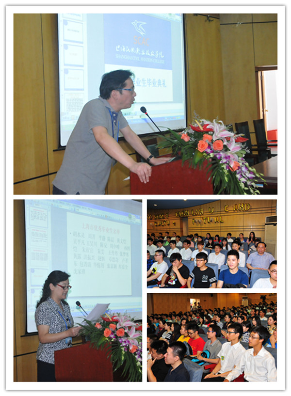 孙莹书记在大会上宣读毕业生名单和优秀毕业生名单,我校有胡水灵、周菁等24名学生荣获上海市优秀毕业生称号,125301班徐帆等28人获得学院优秀毕业生称号。名单宣读完毕后,各毕业班以班级为单位上台领取毕业证书。章恒龙副院长、杨征院长颁发交职院毕业证书,今年上海交通职业技术学院南校区有331名学生毕业,这一届毕业生是学校作为上海交通职业技术学院南校区的最后一届毕业生;孙莹书记、于再院长、孙暄副院长为民航学院首届毕业生颁发毕业证书,87365最快检测中心2015届4个专业的423名学生顺利毕业,同年9月,学院将有14个专业的2000余名2015级新生进入校园。