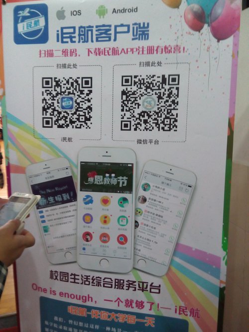“数字迎新”是今年新生报到的一大亮点,现场一款名为“i民航”的APP吸引了众多新同学的目光。这是由我校航空电子设备维修专业145202班王晓峰同学自己开发制作的APP,在9月7日开学第一天正式上线,旨在为同学们提供校园指南、新生报到指导、团青活动、志愿者活动等服务内容。新同学们纷纷拿出手机扫描二维码下载了这款软件,相信它将会为新生的大学生活带来更多便利与惊喜。在班级辅导员报到处,一张张打印好学院团委微信平台二维码被醒目地放在桌上,同学们只要扫一扫就能第一时间收到学院团委发布的信息,当天校团委官方微信平台新增用户500余人,总用户已突破三千人。此外,邬青秋等辅导员老师还提前建立了班级群,并将二维码打印出来,报到的同学在现场扫一扫就能直接加入自己的班级群,快速认识自己的新同学,十分便捷。