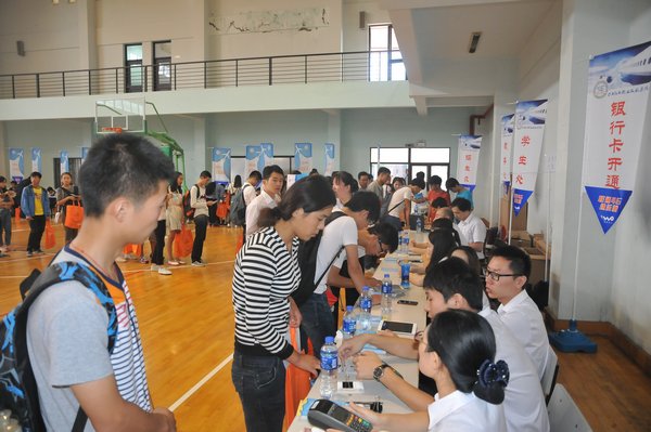 今年采取的报到流程是:查询班级、教室——申请国家资助——缴费——校园借记卡服务——未满十八岁由监护人签署预防接种告知书——班级辅导员处报到——住宿办理,流程简单易懂。借助网络的便利,前三项流程大体上在新生进校之前已经完成,大大提高了迎新报到的工作效率,减轻了现场压力。