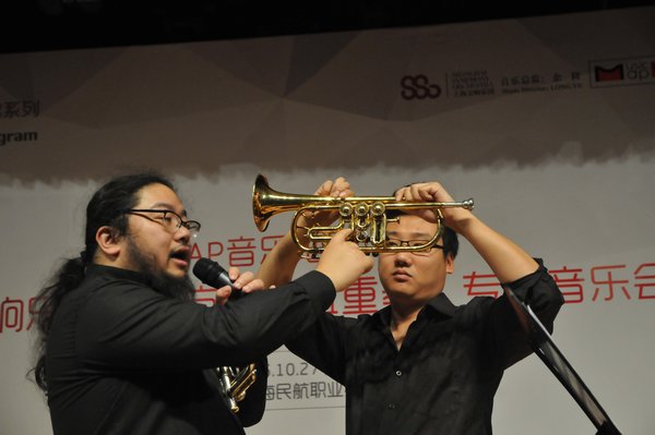 为了让现场师生更好地了解管乐知识、理解乐曲,五位演奏家在每首曲目开始之前都用幽默简洁的语言,深入浅出地介绍了小号、圆号、大号、长号四种铜管乐器的历史起源、发音原理、音色特点等知识,台上台下问答互动,现场气氛十分活跃。