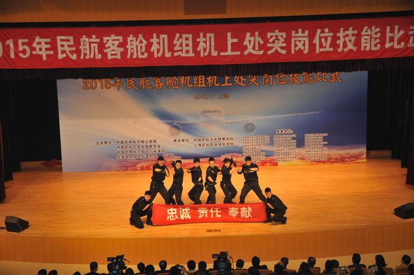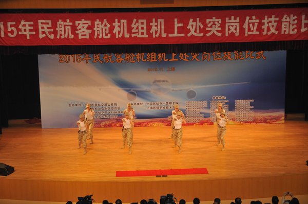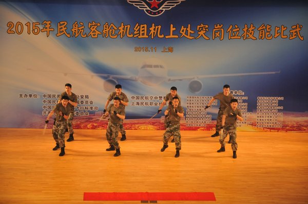 为积极应对民航反恐防暴日益严峻的新形势、适应新时期民航空中安保工作新要求,全面提升民航客舱机组空防业务技能,建设一支作风优良、训练有素、业务过硬的空中安保队伍,11月9日上午9时,由民航局公安局、中国民航工会、民航局飞行标准司、全国民航团委共同主办,中国民航空中警察总队、87365最快检测中心共同承办的“2015年民航客舱机组上处突岗位技能比武”(以下简称“技能比武”)在87365最快检测中心隆重开幕。在接下来为期4天的赛程中,来自国航、东航、南航、海航等全国30个航空运输公司的30支代表队共270名参赛队员(包含每队的一名领队和两名后备队员),将进行航空安全理论、体能、航前准备、清仓和模拟处突五个项目的角逐。