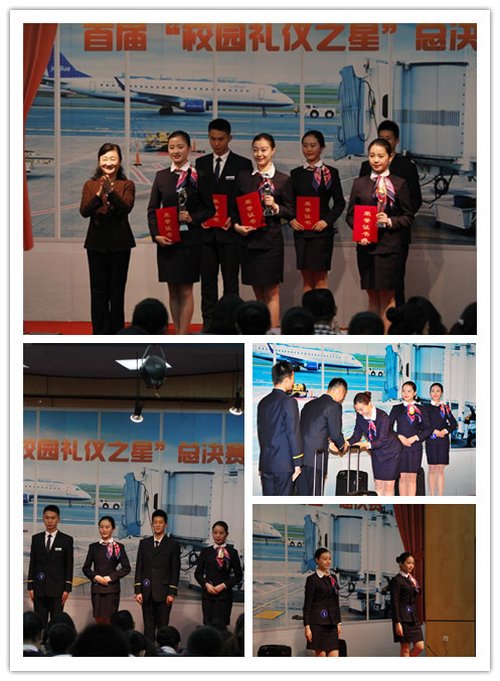 作为学院2016年“文明在校园”主题月系列活动之一,“校园礼仪之星”比赛于3月中旬进行了初赛,来自商务、航服、空乘、空保专业的40名学生参加了比赛,最终155701班张琛、155702班吴沈丽、155703班辛晴、郑墨涵、155801班朱心顺、155803班郭凌峰六位同学闯入决赛。在备战决赛的一个月中,黄颖芬、韩玉锦、谢敏、汪宁四位老师分别从情境模拟、演讲、礼仪展示方面对选手进行了多次培训。