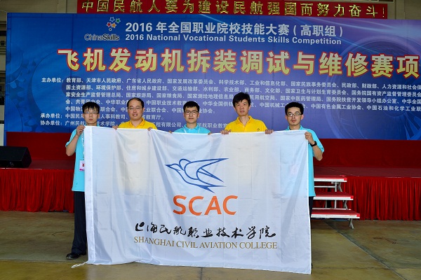 5月12-13日,由教育部、广东省人民政府、国家发改委、交通运输部等单位联合主办,中国民航总局人事科教司、广东省教育厅承办的“2016年全国高职院校飞机发动机拆装调试与维修技能大赛”在广州隆重举行。由我校145103班周楠、史晓鹏,145101班丁佳琪三位同学和林振雄、王志豪两位指导教师组成的上海一队,与中国民航大学、中国飞行学院等22个院校代表同台竞技,最终荣获大赛团体三等奖。