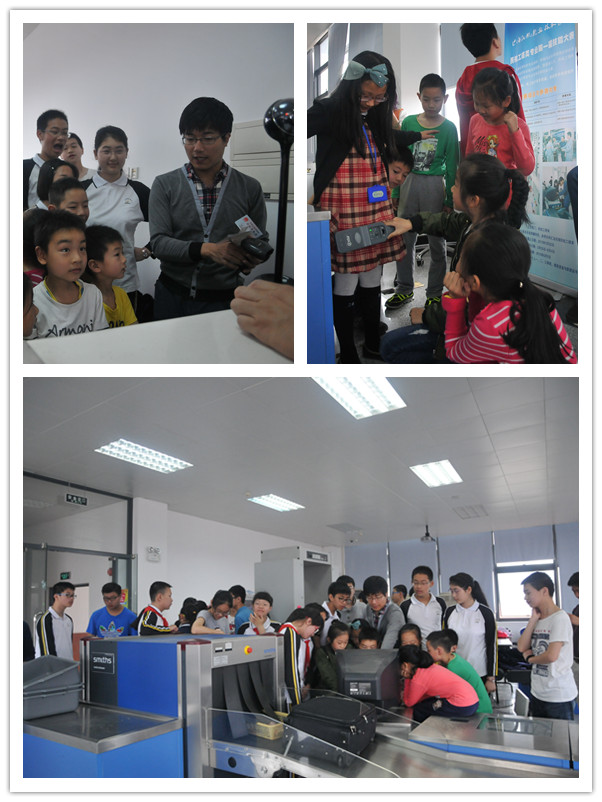 5月15日,安检教研室邵咏亮、艾治余两位老师带领安检专业的四位学生志愿者,在航服中心501安检实训室为前来参观体验的中小学生及家长们进行了安检体验。活动分上下午共两场进行,真实的机场安检仪器,与实际一致的检查流程,都令前来体验的师生们感到兴奋不已。