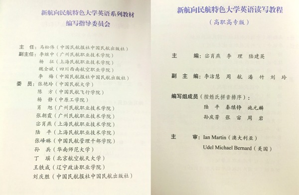 作为新航向民航特色大学英语的系列教材之一,学院副院长杨征、外语教研室宓肖燕和陆平老师担任该套丛书的编写指导委员会成员,宓肖燕和陆建英老师担任本书的主编,周航和刘玲老师为副主编,陆平、秦缜铮、施元麟、孙庆芳、张宙等五位老师参与了章节编写。