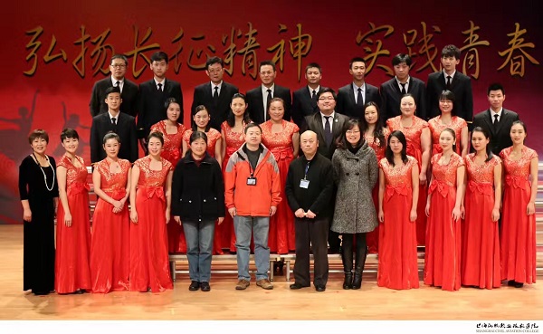此次艺术节正逢红军长征胜利80周年,为了纪念这段伟大的征程、缅怀革命先辈,学院以主旋律合唱比赛作为艺术节的收官之作在闭幕式上推出。此次比赛经由系部初赛和选拔,最终每个系部报送一支队伍参加决赛。每个参赛队演唱两首歌曲,一首必唱歌曲,一首自选歌曲,演唱曲目均为红色主旋律歌曲。经过抽签,1号参赛队为空港管理系,演唱的曲目是《毛委员和我们在一起》、《强军战歌》;2号参赛队为航空乘务系,演唱的曲目是《红军战士想念毛泽东》、《浏阳河》;3号参赛队为航空运输系,演唱的曲目是《*线》、《我的中国心》;4号参赛队为航空制造系,演唱的曲目是《过雪山草地》、《歌唱祖国》;5号参赛队为航空维修系,演唱的曲目是《报喜》以及《三大纪律八项注意》。