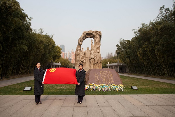 随后,同学们排着两列纵队来到“四·一二”殉难者广场,在航空乘务系辅导员余慧老师的带领下举行了重温入团誓词活动。我校53名团员青年骨干在团旗下,庄严地举起右手,重温入团誓词,重新感受入团仪式的庄严、光荣和喜悦。