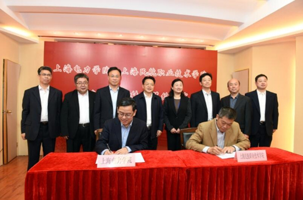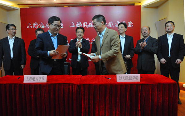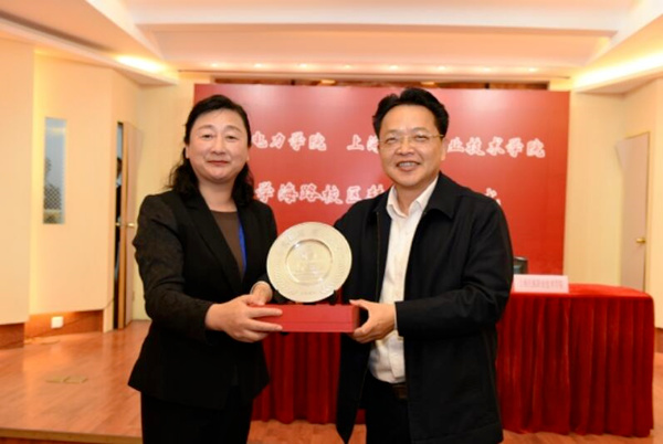 签约仪式由上海电力学院副院长封金章主持,他首先介绍了双方出席的主要领导和前期开展相关工作的情况。大会随后进入了激动人心的签约环节:我校于再院长和电力学院李和兴院长代表双方单位在《上海电力学院学海路校区土地、房屋转让合同》上签字,我校与电力学院全体校领导走上签约台,共同见证这一历史性的时刻并合影留念,全场响起了热烈的掌声。我校孙莹书记向电力学院赠送了印有院名标识的B777模型飞机,电力学院李明福书记回赠了铭刻该校校训和标志性建筑的摆盘以资纪念。