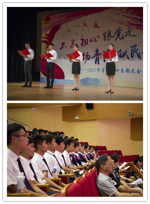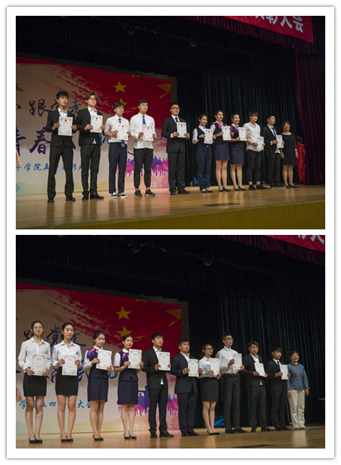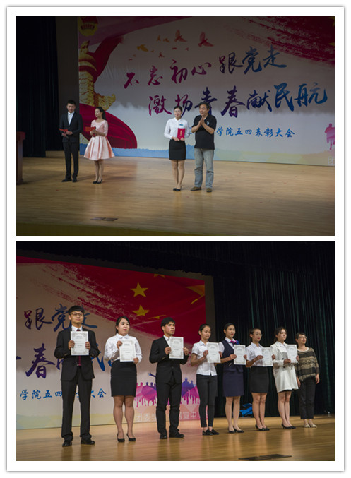 5月26日下午,学院团委主办的2016—2017学年五四表彰大会在学院礼堂举行。出席本次表彰大会的领导有:学院副院长章恒龙,运输系副主任周智勇、维修系副主任高春梅、乘务系副主任吴欣、制造系副主任李冰雪,学生处副处长兼团委书记周维妍,维修系学工办主任陈钟惠、制造系学工办副主任李东。
