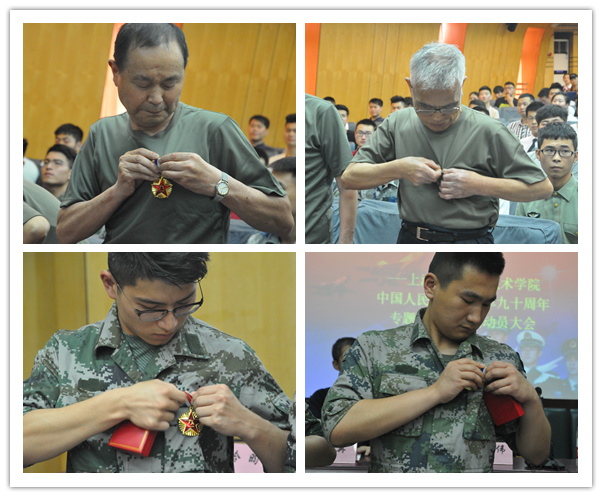 于再院长和顾青主任分别为老战士、退伍学生士兵颁发“八一勋章”。