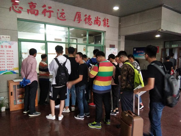 今年新生住宿接待点设在学生事务中心大厅。9月20日早上7点多,学工处宿管办的迎新工作成员早早地来到了接待点。随着家长和新生陆续的到来,迎新工作人员积极投入紧张而忙碌迎的新工作,热情地接待每一位到来的住宿新生。宿管办人员为新生们办理入住手续,带领他们入住宿舍,领取住宿证及相关的物品……全体工作人员有条不紊地完成了住宿所有程序。