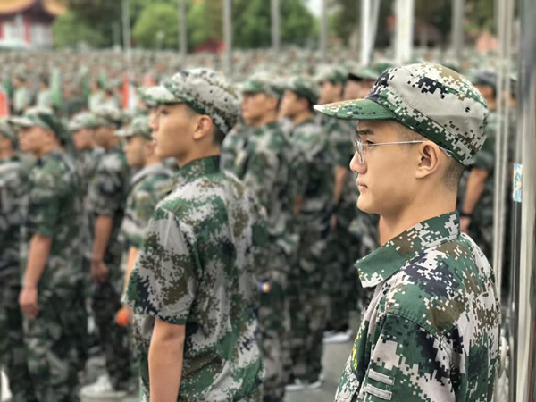 随后,在教官的带领下,全体参训学生举起右手,面对国旗,庄严宣誓。最后,章恒龙副院长宣布开学典礼暨开营仪式结束。随着总教官的一声令下,各连教官带领连队进入训练场地,民航学院2017级新生军训正式开始,同学们以饱满的精神状态,积极投入到了紧张的军事训练中去。