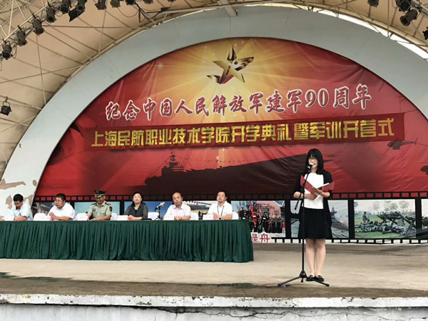 党委书记孙莹首先致辞。她向同学们描绘了学院的美好发展前景,今年上半年学院已完成购置浦东惠南新校区的签约,计划于明年秋季完成交接。明年的这个时候,学院将拥有龙华和惠南两个校区,教学硬件和教学实力都将提升,能为同学们创造更好的学习条件。孙莹书记强调,民航强国战略是国家强国战略的重要组成部分,习总书记提出北京新机场是国家发展一个新的动力源,说明行业发展迅速,承担着国家发展的历史责任,急需专业技术能力强的高素质应用型创新人才。作为民航学子,同学们要努力践行当代民航精神,利用好大学三年的美好时光,不断完善自我,实现人生超越。她希望同学们以饱满的政治热情和积极的学习态度投入军事训练,以军人的标准严格要求自己,服从命令听从指挥,做到流血流汗不流泪,发扬团队精神,培养良好的行为习惯。她预祝本次军训取得圆满成功。