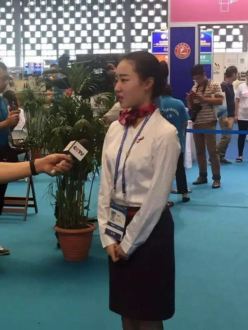 2016年5月19日,她代表学校及东航参加了上海市选拔赛。比赛项目分别是宴会摆台、咖啡制作、调制鸡尾酒以及烈性酒盲品。她沉着应战,一举拿下餐厅服务冠军,并获得西餐服务员的二级职业资格证书。经过一个月多月的训练,6月27日又进行了6进2的选拔,本次增加了现场英语服务的比拼。她深知,经过培训,大家的各项技能水平基本没什么差距了,因此她赛前在英语方面也做了大量了功课。正是她这种一丝不苟的学习精神,帮助她在比赛中顺利晋级,进入上海市集训队,备战8月13—14日的全国选拔赛。