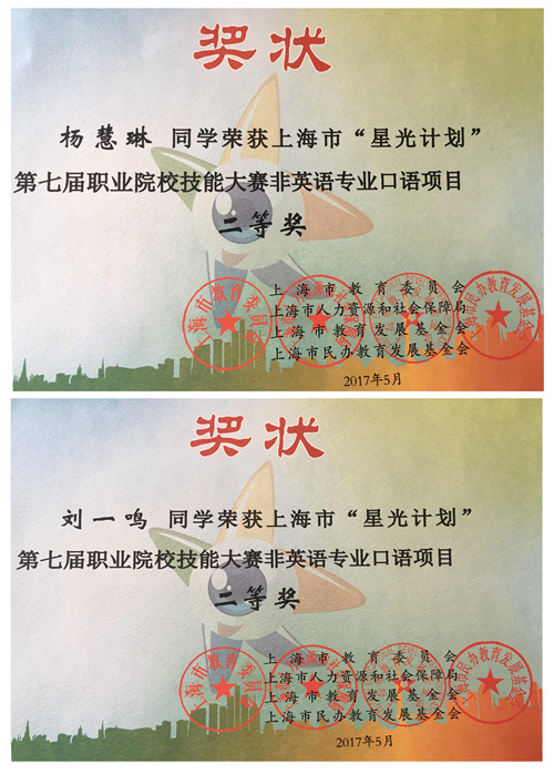 近日,上海市第七届“星光计划”职业院校技能大赛结果出炉,我校师生取得优异成绩,获得多个荣誉。其中,航空制造系宋晟老师荣获教学技能大赛三等奖;航空乘务系1621106班杨慧琳同学和航空维修系155104班刘一鸣同学双双获得“非英语专业口语项目”二等奖,名次分别为第五名和第十二名;基础部外语教研室刘珏老师获得非英语专业口语项目指导老师二等奖。我校还喜获上海市“星光计划”第七届职业院校技能大赛非英语专项项目团体三等奖。