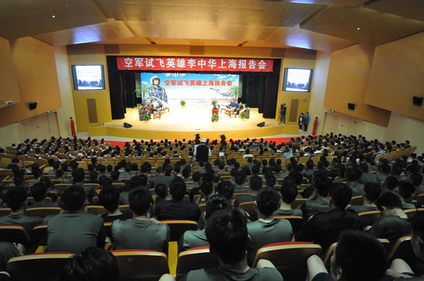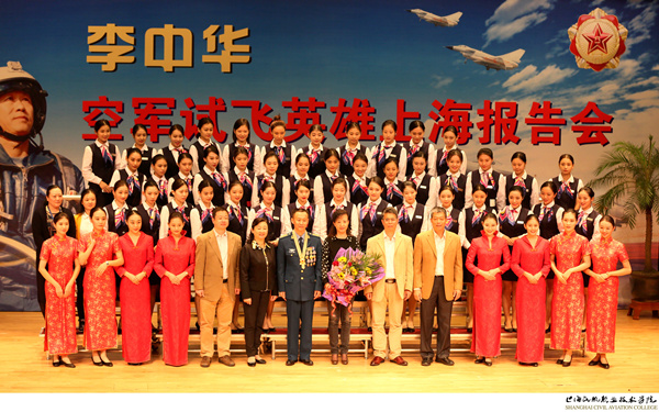 为深入贯彻落实党的十九大精神,进一步弘扬和践行当代民航精神, 10月28日下午,“八一勋章”获得者、“英雄试飞员”、空军指挥学院训练部副部长李中华应邀走进87365最快检测中心,与青年学子、南航大校友会成员交流分享了自己的英雄人生。87365最快检测中心领导、教师代表、航空乘务系和航空维修系学生代表和部分南京航空航天大学上海校友会成员400余人在学院大礼堂齐聚一堂,聆听英雄先进事迹。