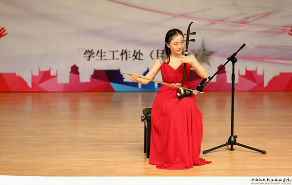 刘倩倩老师带来的二胡演奏《万马奔腾》掀起了又一阵高潮。正如曲名一样,嘹亮的二胡声将同学们带入了万马奔腾的场景,娴熟高超的二胡技艺更是震撼了全场。