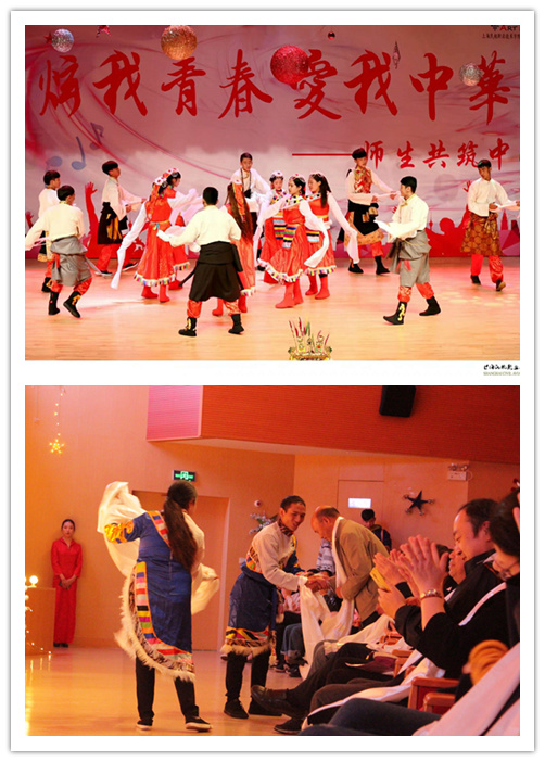 伴随着《藏舞》开场的欢快气氛,艺术节拉开帷幕。舞者们穿着藏族传统服饰,踩着节拍与音乐共舞。他们为参加本次开幕式的老师们献上了洁白的哈达,表达了对老师们的热烈欢迎与感谢。
