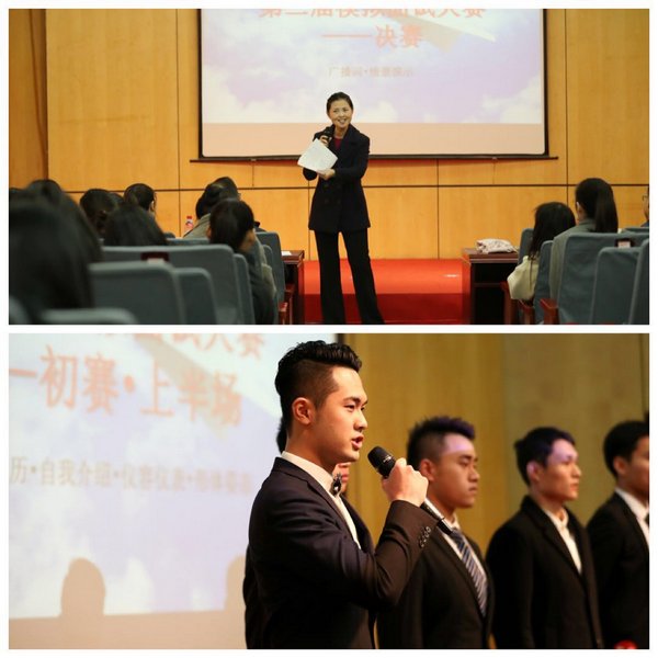 决赛分为广播词和情景演示两个板块,广播词主要考察参赛选手的语音语调,发音是否标准,朗读是否流利;而情景演示主要考察参赛选手问题处理是否合理,是否足够机智灵活地帮助旅客解决问题。值得一提的是,在情景演示中,16级的学生们扮演乘客,他们精湛的演技令乘务员险些招架不住,惹得全场观众捧腹大笑,而参赛选手面对这些突发情况,耐心细致地帮助旅客解决问题,表现出良好的随机应变能力,大方得体地处理好突发事件。