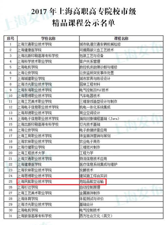 为贯彻落实全国高校思想政治工作会议和上海市职业教育工作会议精神,深化高等职业教育课程教学改革,加快“双师型”教师队伍建设,根据市教委关于开展2017年度上海高职高专院校市级精品课程、教学团队评选工作要求,经学校推荐、现场答辩、网上公示、专家评审等程序,我校航空运输系副主任、陆东副教授为课程负责人的《危险品航空运输》获“上海高职院校市级精品课程”称号。